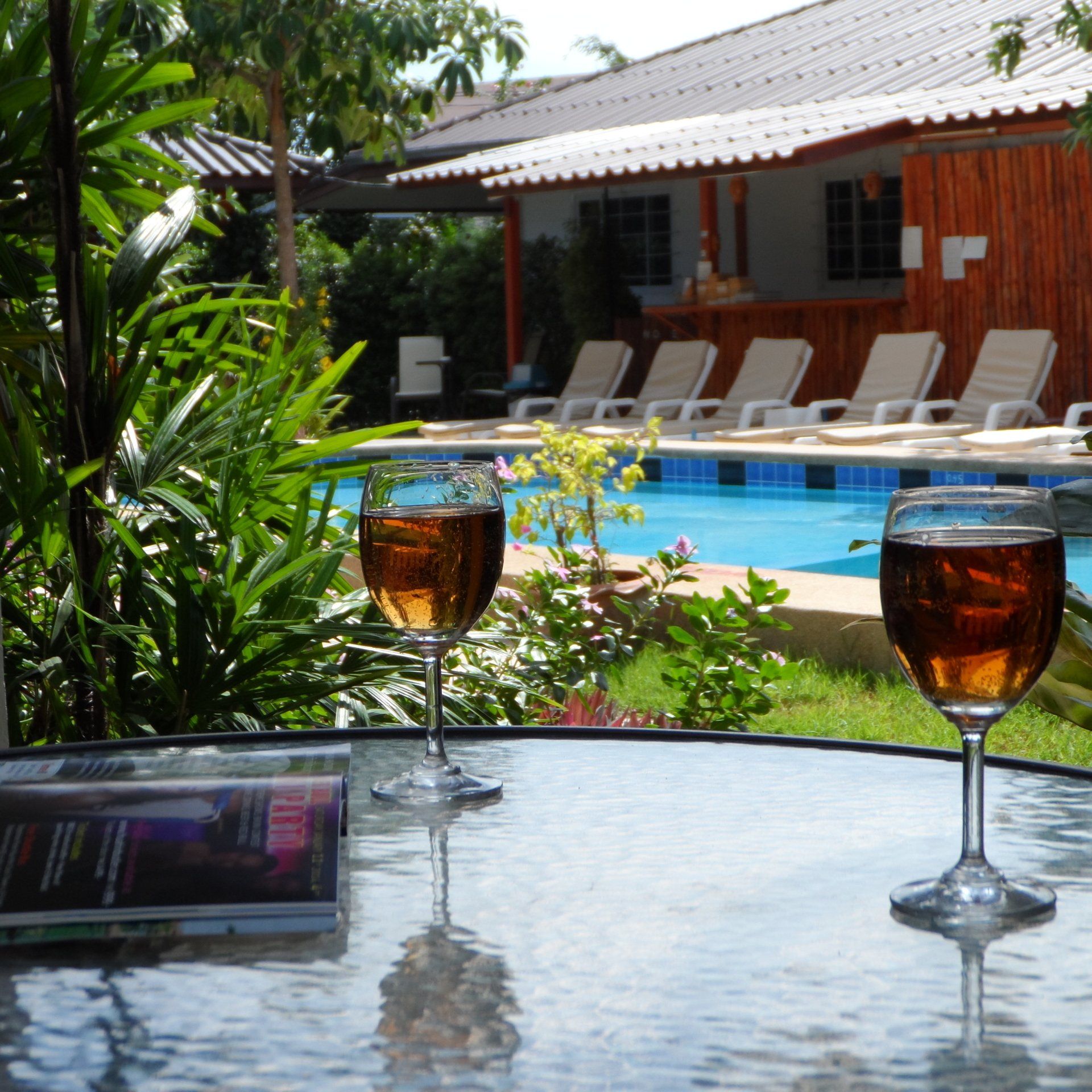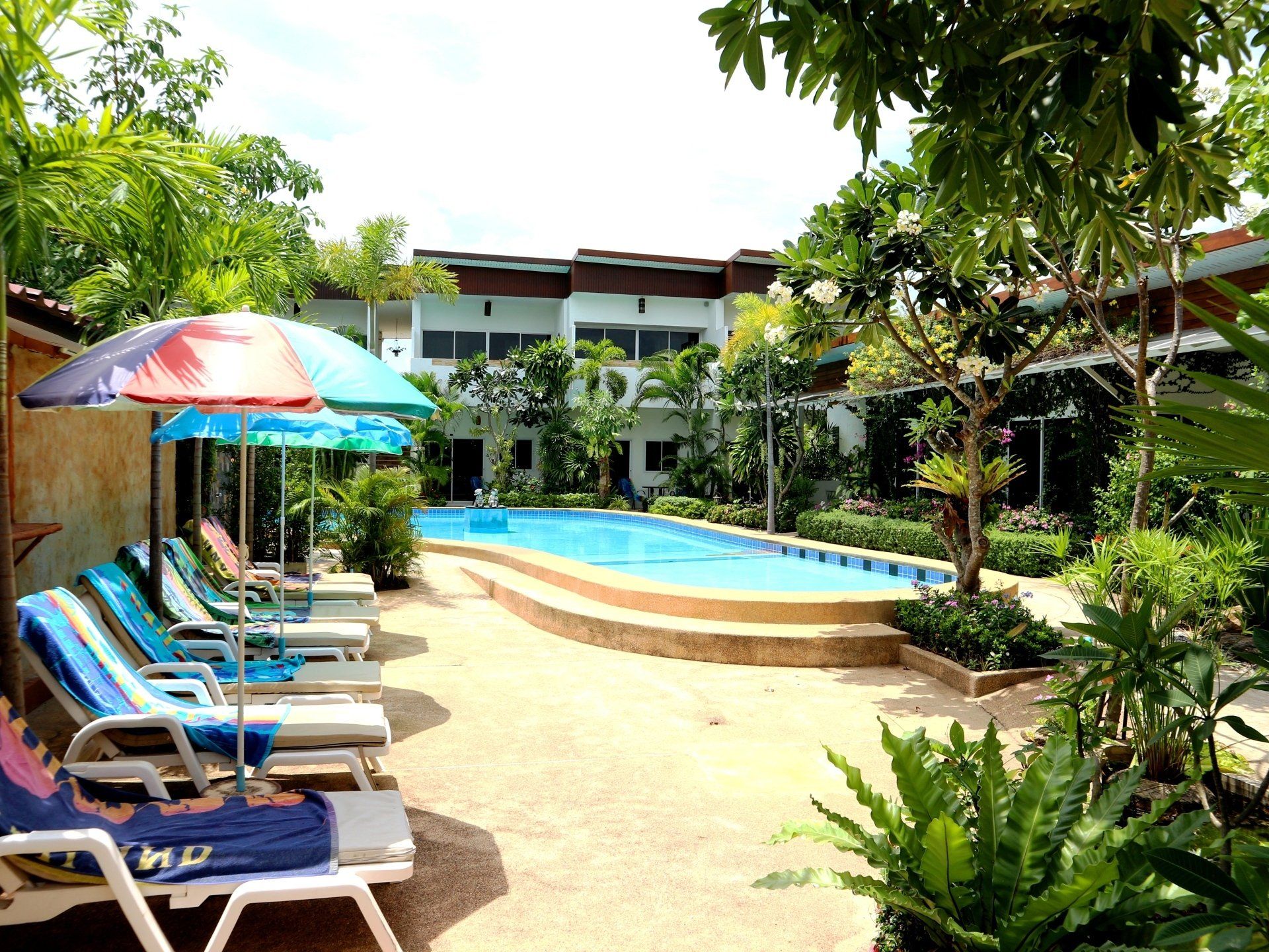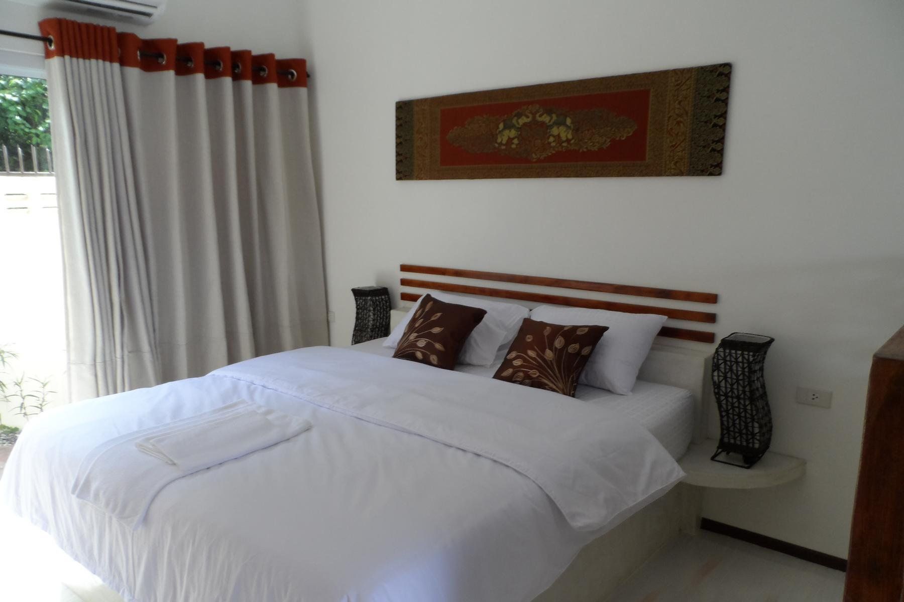 supermarket and restaurants .All charming studio’s are very comfortable and relaxing with terrace / balcony on swimming pool side .Included king size bed, sofa , aircon , fan ,microwave, refrigerator, water cooker, toaster, lcd tv ,cable , wifi .Bicycle rent. We speak Thai Eng .